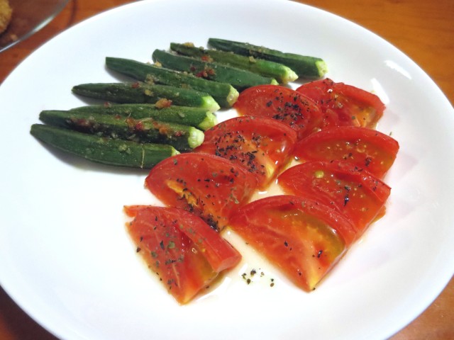 ↑焼きオクラ・焼きトマト。