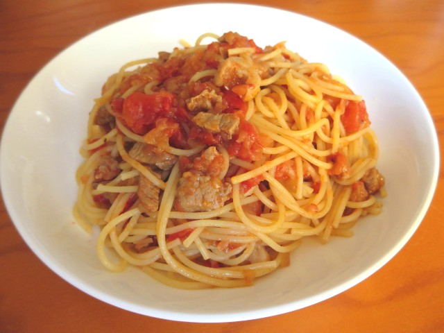 夫の人が作るトマトパスタは、うまいなぁ。