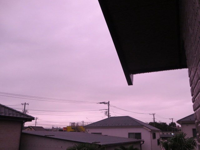 ↑今日の夕焼け。雲に覆われた空全体がピンク色だった。