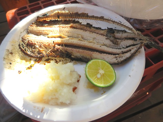 ↑焼きサンマ。大根おろし&すだちを添えて。黒コゲ…?
