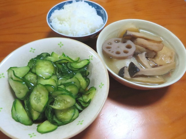↑夜ご飯。ご飯・キュウリ浅漬け・おでんポトフ続き。