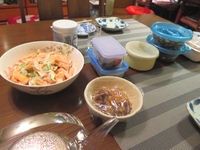 ↑下でご飯。サラダ・煮物・炒め物・お漬物など。