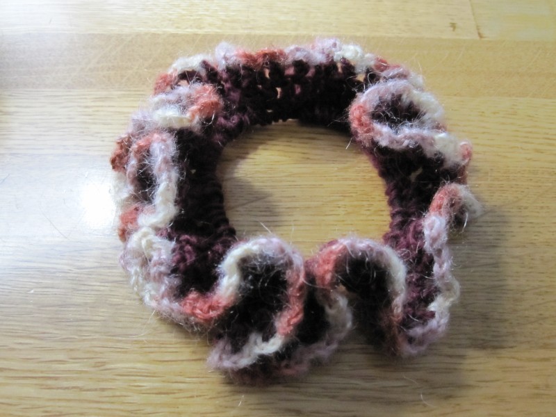 縫い物には早速飽きたので、毛糸でシュシュを編んでみた。