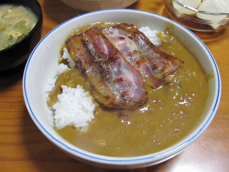 ↑カレー3日目。今日は焼いたベーコンをトッピング。