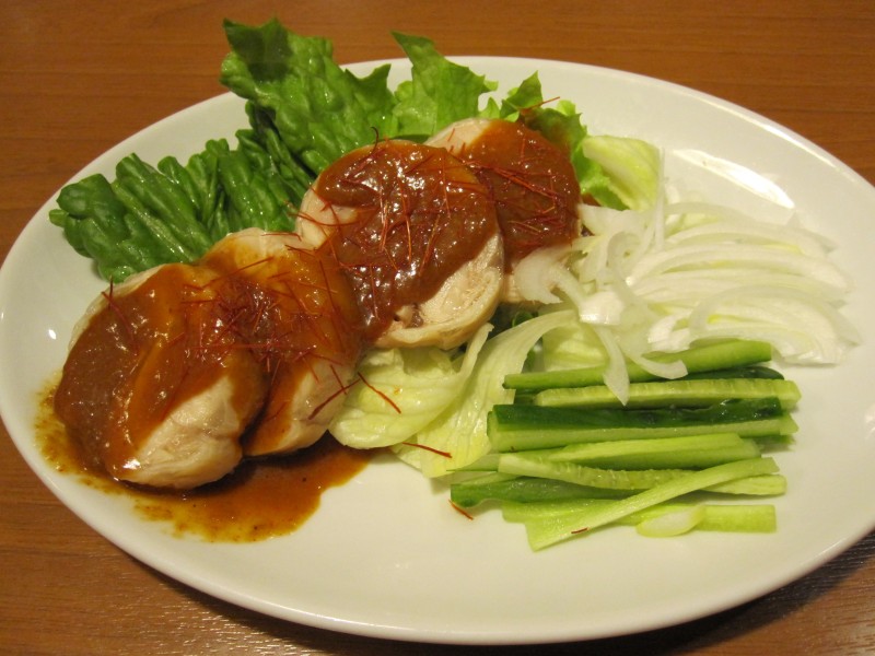↑バンバンジー。鶏肉が、鶏ハムみたいに丸く成形されていた。