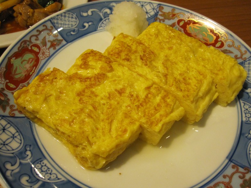 ↑だし巻き玉子。辛い料理のオアシス。