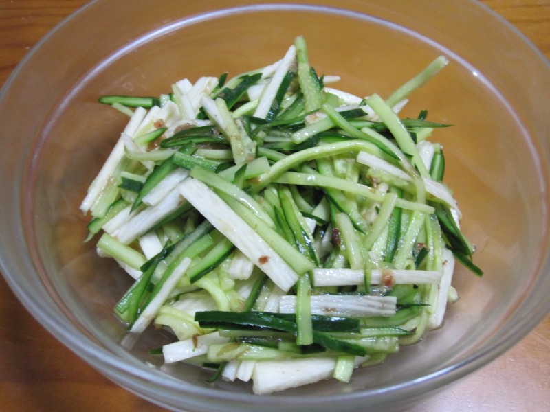 ↑長芋とキュウリのサラダ。おかかしょうゆあえ。