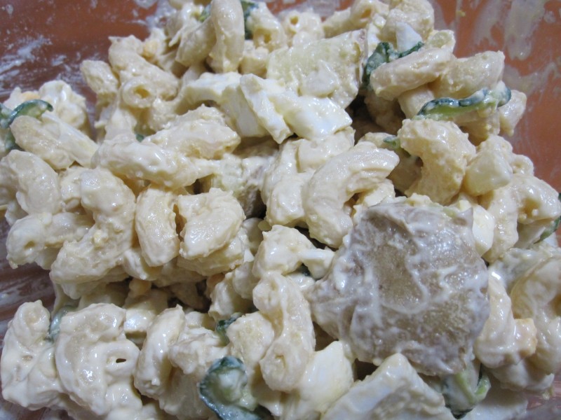 ↑昨日のマカロニポテトサラダの残り。夫の人の好みで、マヨ追加。