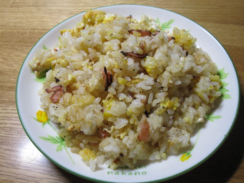 ↑チャーハン。寝る前なので、小皿に少しずつ。ちょーうまかった。