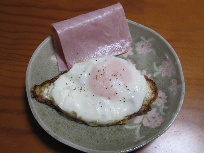 ↑朝食。ハム&目玉焼き。