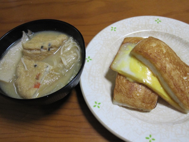 ↑具だくさん味噌汁・チーズ挟みはんぺん。