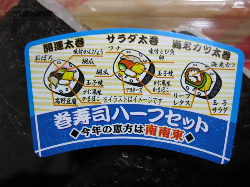 ↑恵方巻き~。信心深くないので(?)、ハーフサイズで。