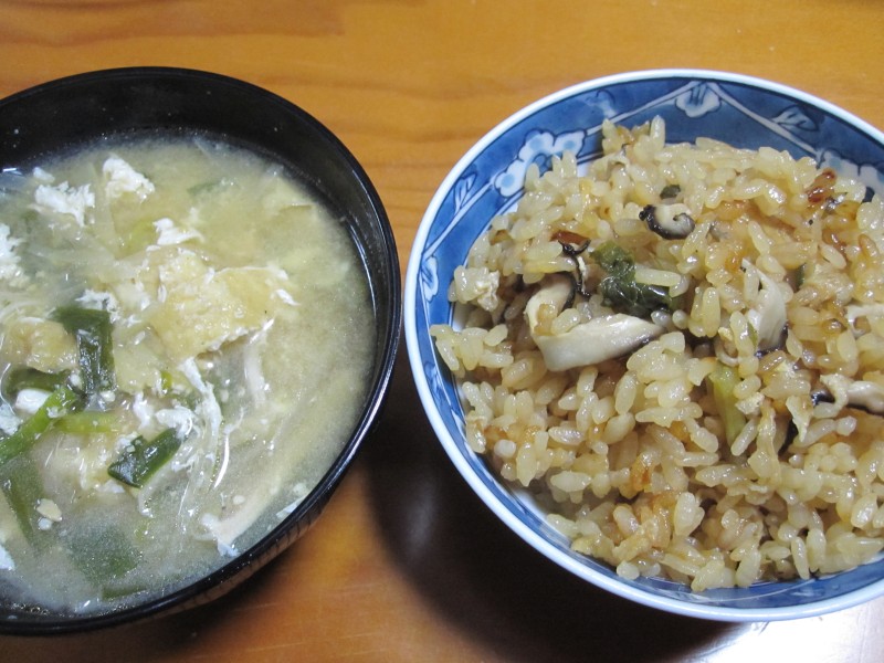 具はしいたけ・大根葉・油揚げを刻んで。オレ様天才。超うまい。