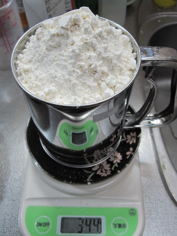 ↑ふるいに加えて、カシャカシャ投入。まぜる。