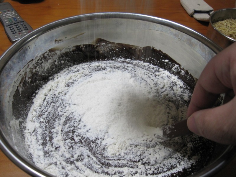 ↑粉をカシャカシャふるいながら投入。まぜる。