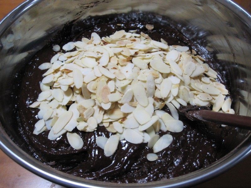↑ローストしたアーモンドスライスを投入。まぜる。