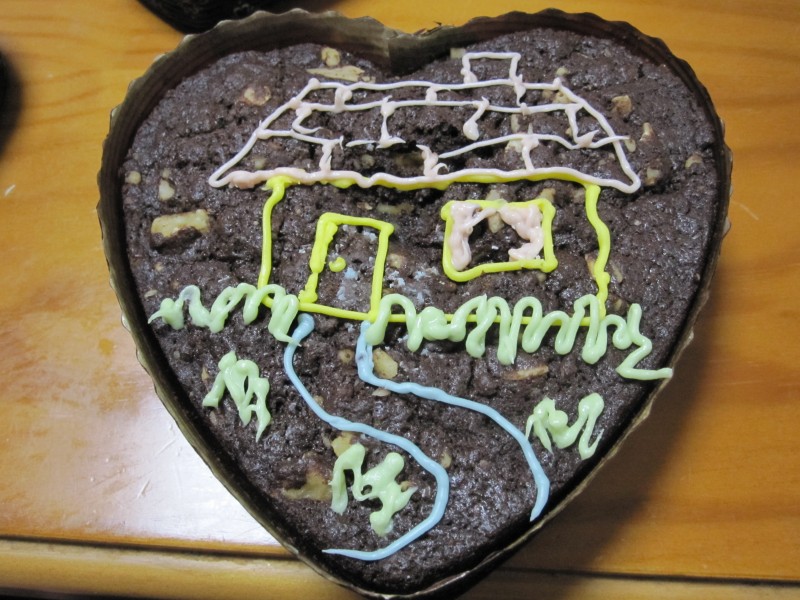 ↑残ったチョコペンで、自分のぶんに落書き。おうち。
