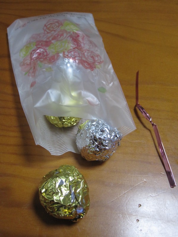 ↑金の玉は白いチョコ、銀の玉は黒いチョコ。