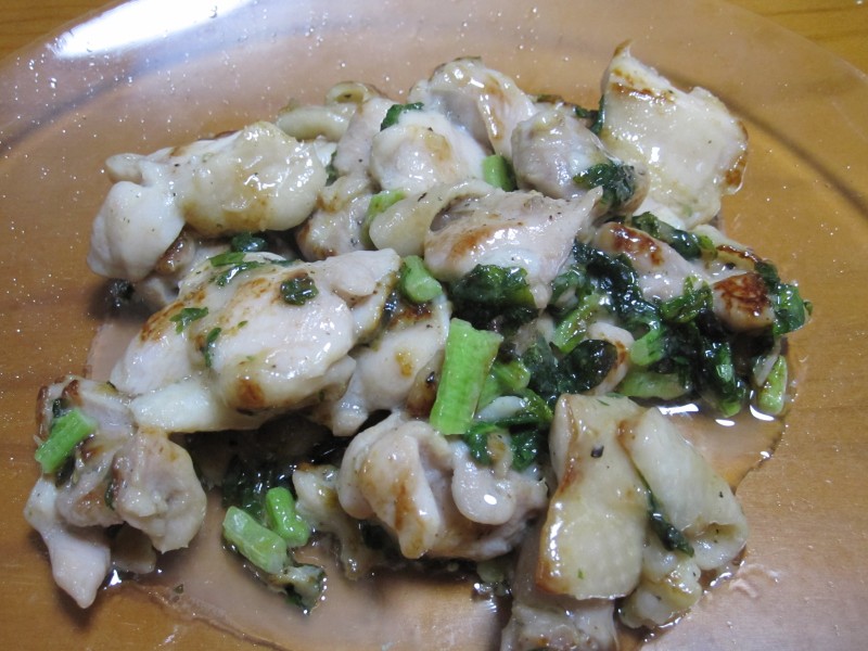 ↑大根葉と鶏肉の塩だれ炒め。うまうま。