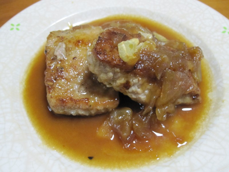 ↑豚肉のステーキ。にんにく醤油リンゴジャムソース。超うま。