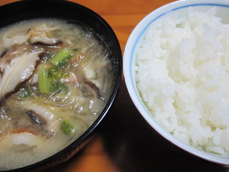 ↑春雨スープ・ご飯。スープ、夫の人に好評だった。