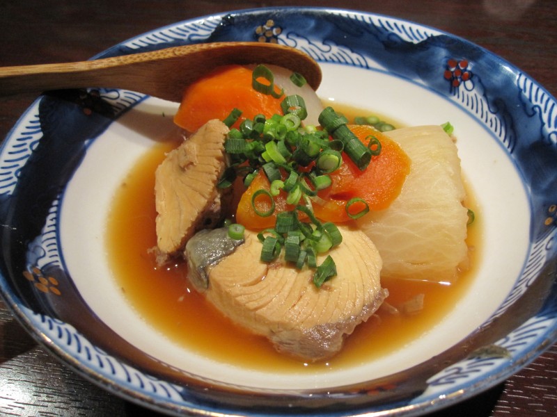 ↑カンパチと野菜の煮物。これも大根がうまかった。