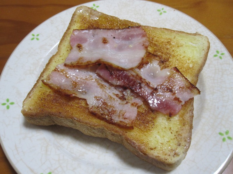 ↑朝ご飯。トースト&ベーコン。