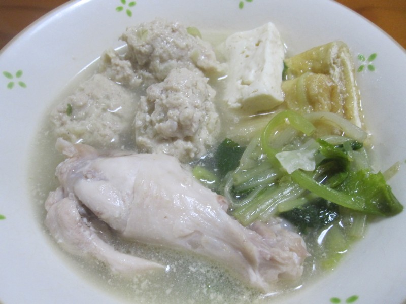 ↑具は、鶏つくね・豆腐・油揚げ・根三つ葉・手羽元。