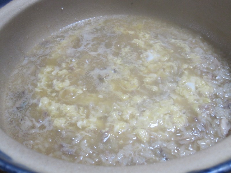 ↑〆は雑炊。ぐつぐつ。