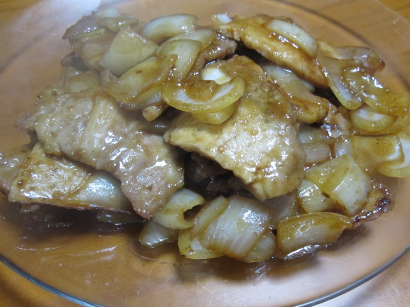 ↑夫の人が作った、豚と玉ねぎの炒め物。