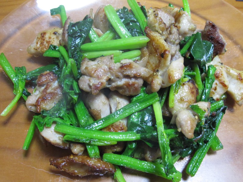 ↑鶏肉とほうれん草の炒め物。今日は、ほんのりカレー風味。