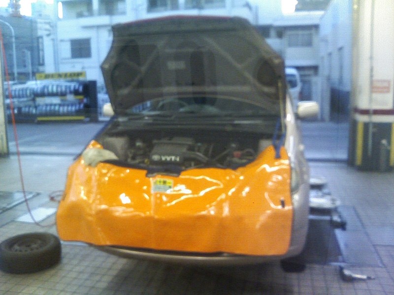 ↑窓越しに、うちの車の点検風景が見えたので、撮ってみた。
