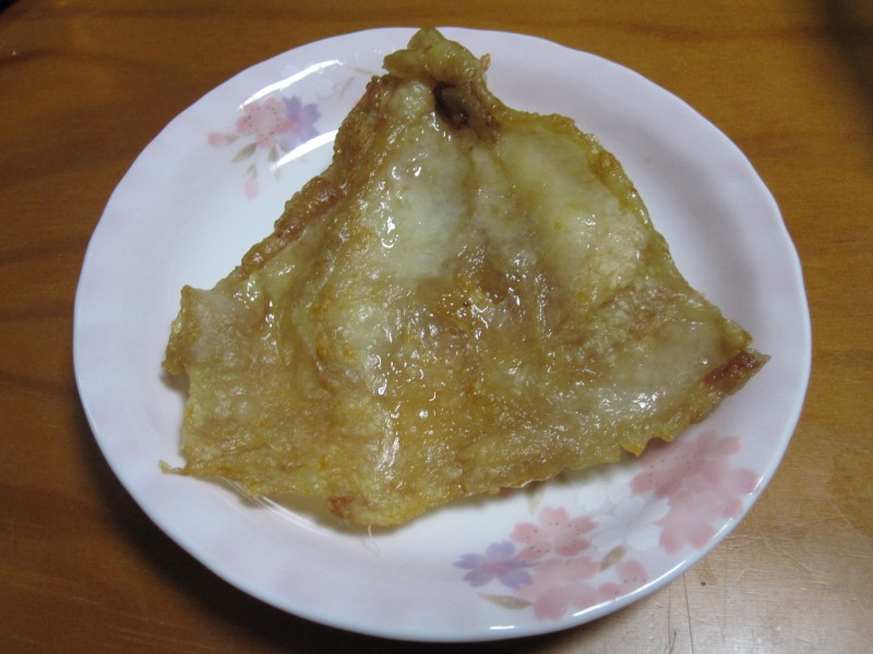 ↑鶏肉の皮。夫の人が、カリッと焼いてくれた。