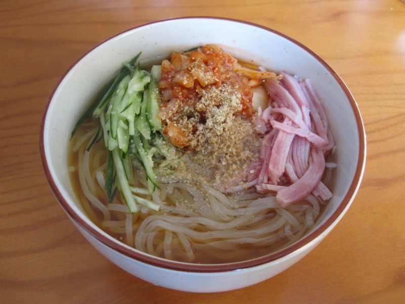 ↑お昼ご飯は、冷麺。冷麺はうまいなぁ。元気でる。
