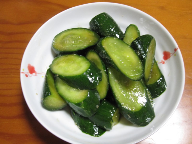 ↑キュウリの浅漬け。中華風。