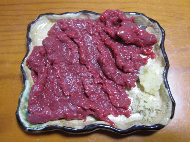 ↑下からもらった馬刺し。