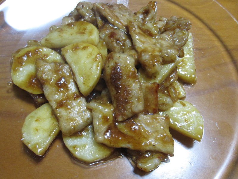↑豚肉と長芋の炒め物。