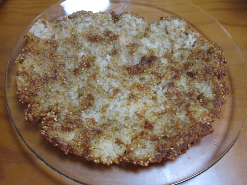 ↑朝ご飯。ツナゴマご飯のお焼き。