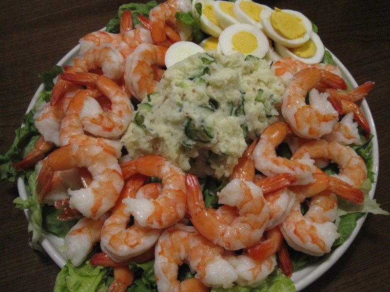 ↑シュリンプサラダ。真ん中のポテトサラダ、うまかった。