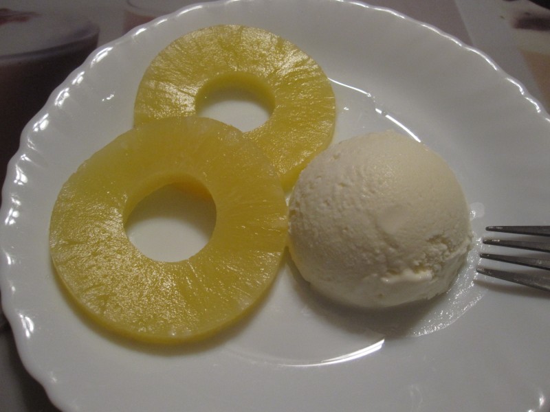 ↑デザート第1弾。パインとバニラアイス。