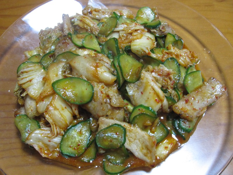 ↑豚キムチ炒め。キュウリも入れてみた。