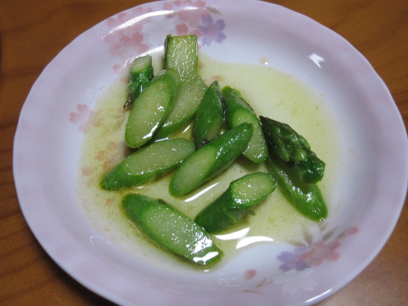きれいな薄キミドリ色。今年の初収穫をバター炒めで。