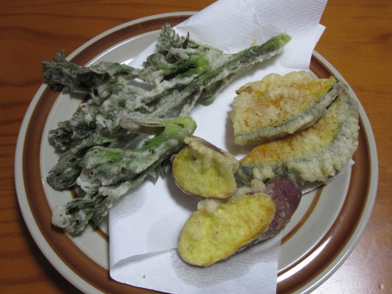 ↑夜ご飯。下からもらった天ぷら。タラの芽・さつまいも・かぼちゃ。