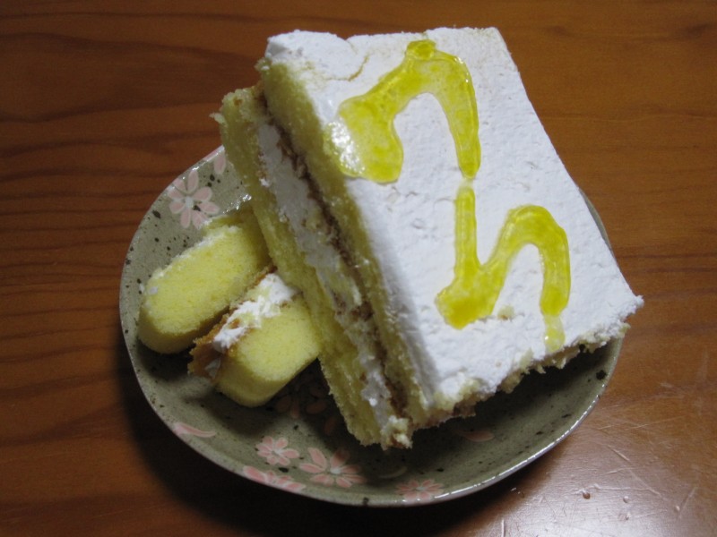 ↑デザートは、切り落としケーキ。