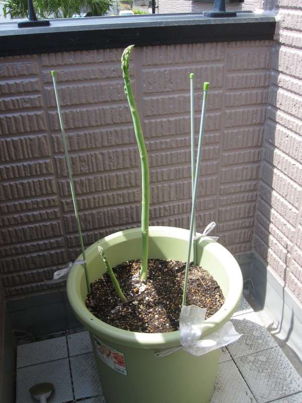 ベランダ栽培のアスパラ、夫の人が写真撮って~と言うので、撮影。