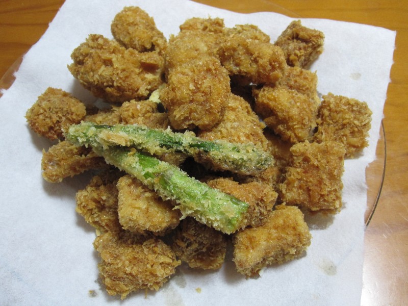 うちの4本目のアスパラ・ひとくちトンカツ・チキンカツ。
