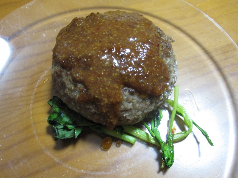 ↑ハンバーグ。ソースには、マスタードがたっぷり。