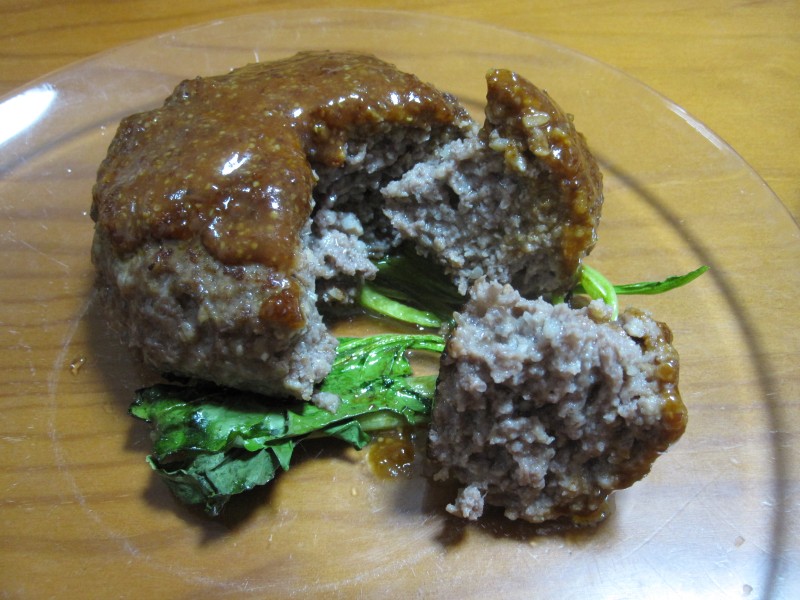 ↑切っても肉汁が流れず、ハンバーグの中に全部留まっている感じ。