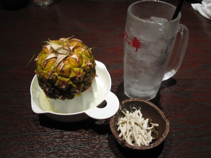 ↑生搾りパインサワーと、お通し。