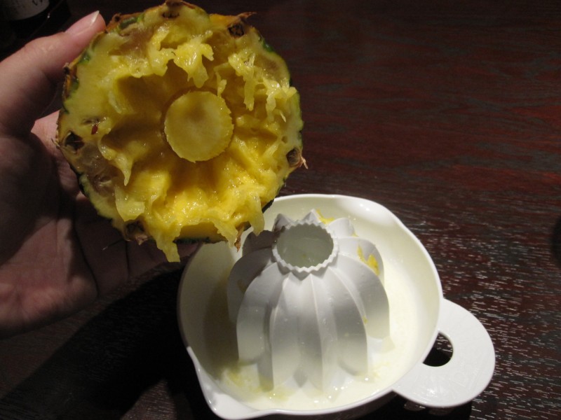 ↑絞ると芯が残る、パイン専用の絞り器。